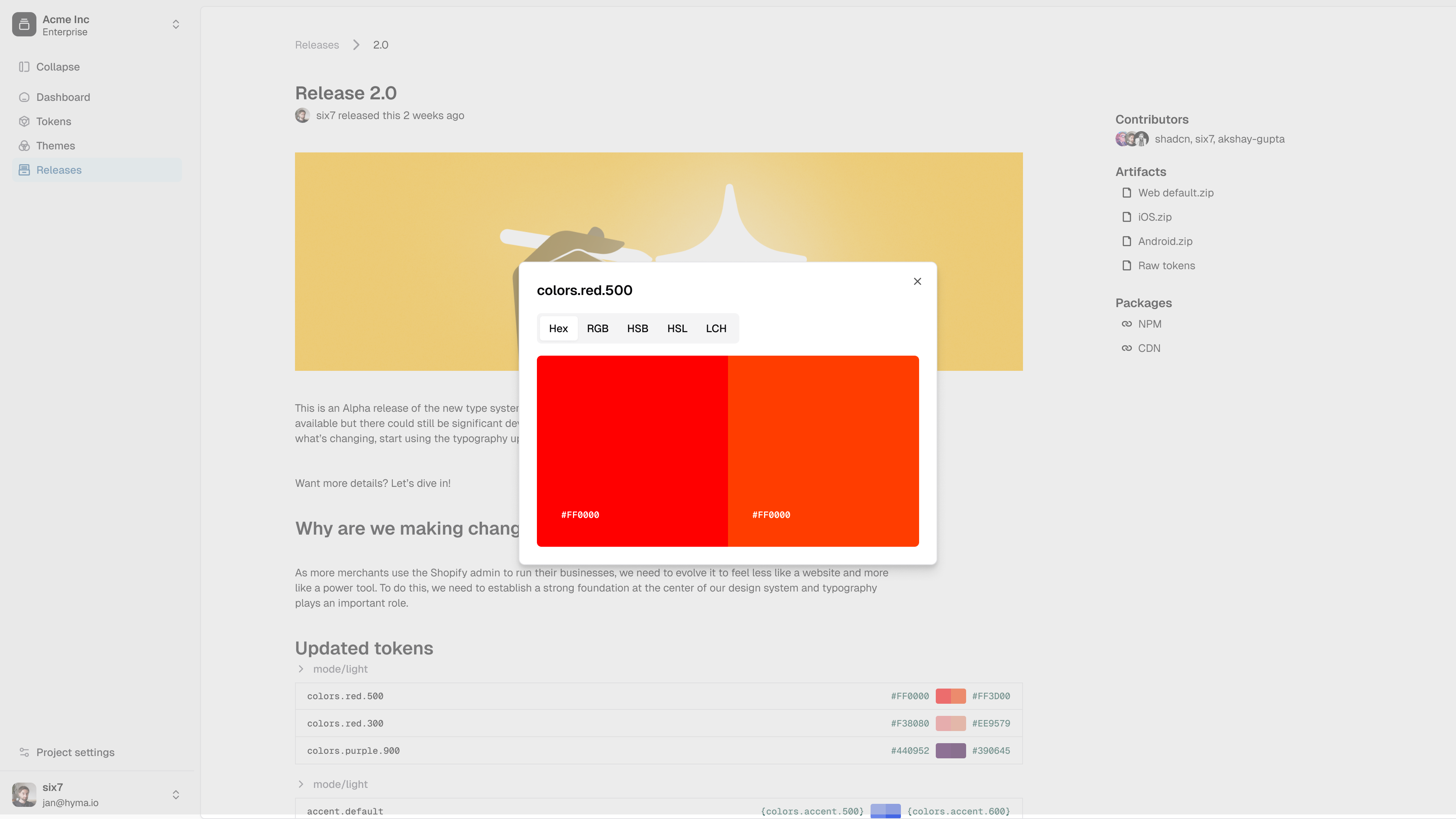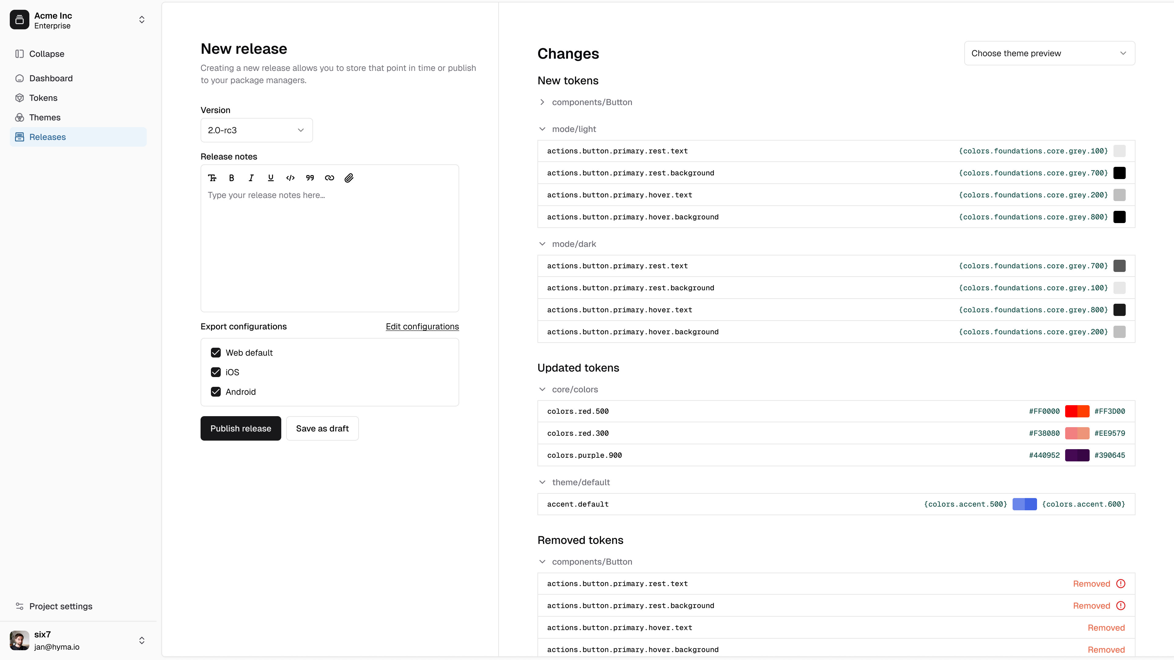 In the list of changes a release consists of, you will be able to select each token, and see a preview of the before/after